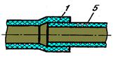 в литой тройник1-раструб; 2-нагревательный элемент; 3-гладкий конец; 4-тройник; 5- муфта