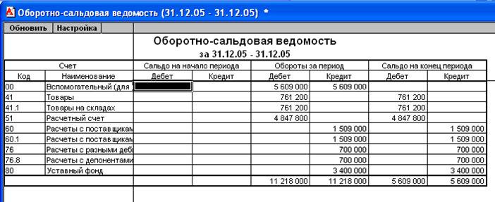 После того, как входящие остатки введены, следует убедиться в их соответствии реальным остаткам. Для этого составьте оборотно-сальдовую ведомость на дату ввода остатков и проверьте конечное сальдо на счете 00. Оно должно быть нулевым.