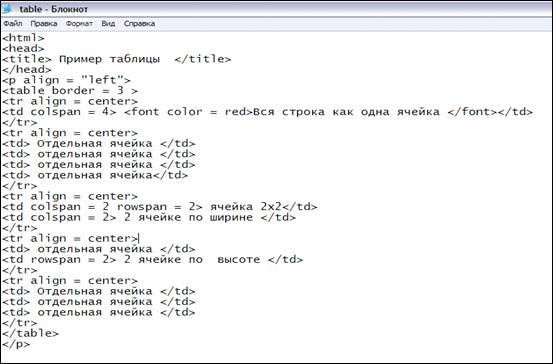 Создание HTML - таблиц.