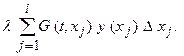 Искомую функцию заменим ступенчатой функцией, принимающей постоянное значение на каждом частичном промежутке . Считаем, что верхняя граница интеграла изменяется дискретно, принимая значения