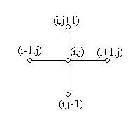 Конфигурации внутренних узлов, связанных одним уравнением, называют шаблоном разностной схемы и для удобства построения схемы изображают на чертеже. Для схемы (3) шаблон изображен на рис. 2.