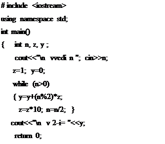 Задача 4. Преобразовать целое число из 10-й системы счисления в двоичную.