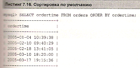 Как видно из листингов, результат выборки представляет собой записи, которые располагаются в порядке, в котором они хранятся в базе данных. Однако часто требуете» отсортировать значения по одному из столбцов. Это осуществляется при помощи конструкции order by, которая следует после выражения select. После конструкции order by указывается столбец, по которому следует сортировать данные.