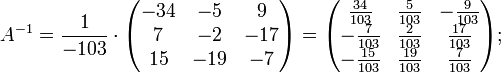 Умножим это матричное уравнение слева на A − 1 — матрицу, обратную к матрице A: