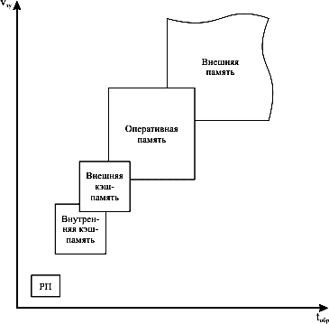 Рис. 2. Иерархическая организация памяти в современных ЭВМ