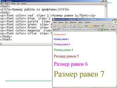 Служит для указания размера шрифта в условных единицах от 1 до 7. Принято считать, что размер «нормального» шрифта соответствует числу 3.