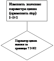 В качестве примера приведу фрагмент схемы программы с циклом с заданным числом повторений (в большинстве языков программирования эта конструкция начинается зарезервированным словом for) (см. рис.2.9, 2.10).