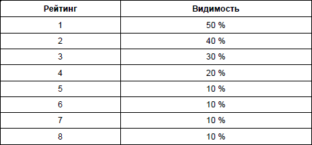 Таблица 1.6. Видимость естественных результатов поиска