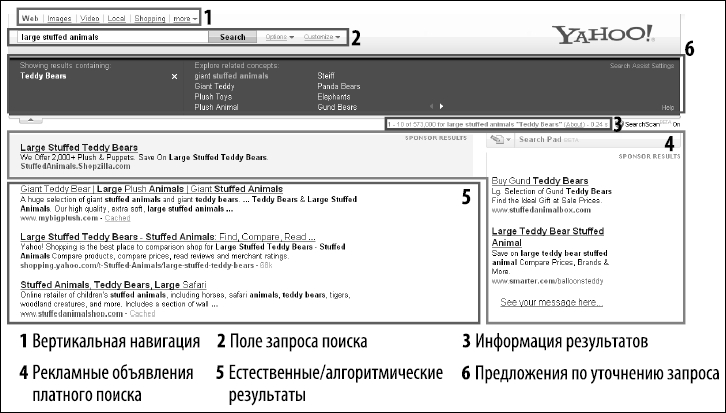 Рис. 2.2. Компоновка результатов поиска в Yahoo!