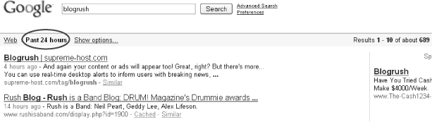 Используя отличный оператор диапазона даты в движке Google (рис. 5.5), вы можете определить, сколько раз за последний день (неделю, месяц или год) появлялся ваш термин. Для этого есть два способа.