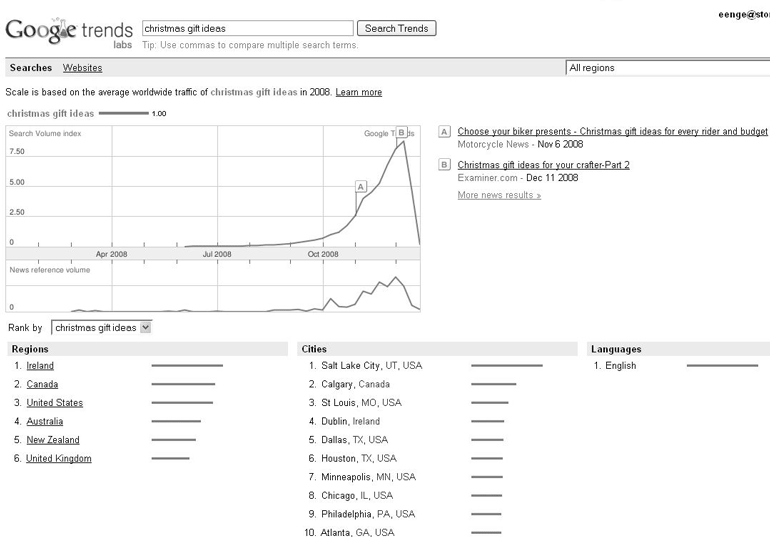 Одна из тонкостей изучения ключевых слов (и любой полноценной стратегии оптимизации) состоит в том, что использование ключевых слов существенно меняется с течением времени. Например, праздники неизбежно ведут к всплескам связанных с ними ключевых слов. Примерами могут служить операции поиска по таким словам, как: Halloween costumes, gift ideas for Christmas или Valentine’s candy.