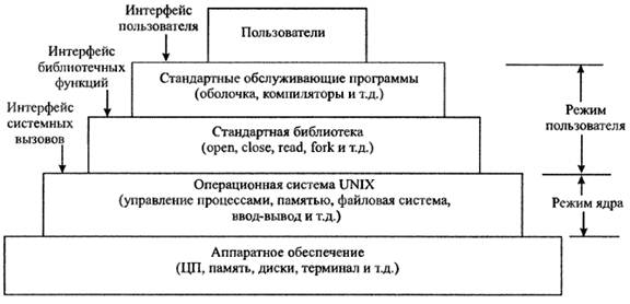 Операционную систему UNIX можно рассматривать в виде пирамиды: