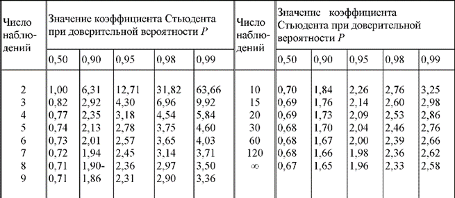Поэтому при ограниченном числе измерений n вводят коэффициент Стьюдента tp, определяемый по специальным таблицам в зависимости от числа измерений и принятой доверительной вероятности Р.
