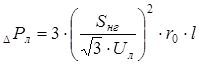 где Iл - сила тока в ЛЭП, А; rл -активное сопротивление проводов ЛЭП, Ом;
