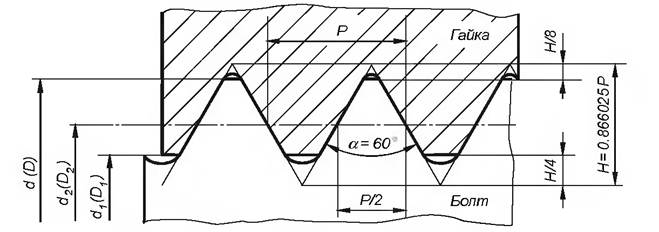 Номинальным диаметромрезьбы является наружный диаметр d = D