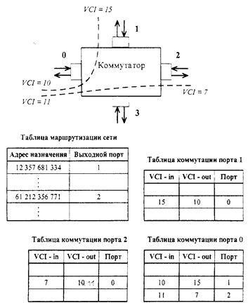 Рис. 17.8. Коммутация в сетях с виртуальными соединениями.