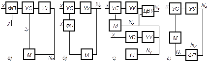 Так как возможны и варианты места включения измерительного функционального преобразователя, то рассматриваемые методы измерений можно разбить на четыре группы (рис.5.14). Во всех вариантах предполагается, что для получения числового выражения NZ измеряемой величины z требуется функциональное преобразование аргументов х и у (или их числовых эквивалентов Nx, Ny).