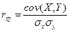 Ковариацией случайных величин Х и Y называется среднее произведение отклонений каждой пары значений величин Х и Y в исследуемых массивах данных: