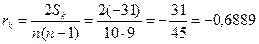 в которой первая строка состоит из рангов наблюдений Х, а вторая из рангов наблюдений Y.