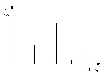 По распределению спектра колебаний вибрация делиться на широкополосную (Рис. 2)– обладающую бесконечным количеством частот в определенно частотном диапазоне и узкополосную – обладающую дискретным спектром вибрационных частот (Рис. 3).