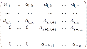 Далее пусть и . Тогда имеет базисных столбцов и хотя бы один столбец не принадлежащий этой системе. Пусть базисных столбцов – это первые столбцы. Тогда –ый столбец, , выражается через них по теореме о базисном миноре: