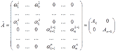 Выясним, какой вид принимает матрица линейного оператора в , если и базис в состоит из базиса в и базиса в . Т.к. и – инвариантные подпространства, то .