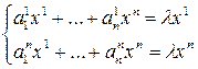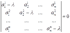 Таким образом, задача построения собственных чисел и собственных векторов сводится к решению системы (4). Эта система однородных уравнений, она имеет нетривиальное решение , если ее определитель равен нулю, т.е.