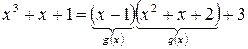 Положим . Тогда . Пусть и . Если , то остановим процесс вычисления; если , то положим . Пусть , – старший коэффициент , и так далее… Так как степени многочленов убывают, то получим : и . Процесс останавливается. Суммируя полученные ранее выражения, получаем: