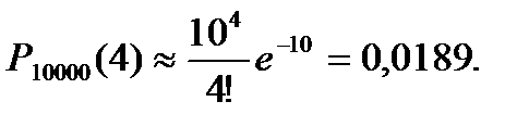 Пример 3.40. Известно, что на 10000 выпущенных деталей приходится 10 бракованных. Какова вероятность того, что четыре случайно выбранные детали окажутся бракованными?