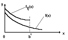 Если задана плотность распределения f(x) неусеченной случайной величины, то кривая плотности распределения fx(x) усеченной случайной величины располагается выше, как показано на рис. 3.9, где а = а¢ = 0, в =