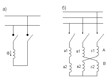 Такую систему можно получить из соединений в 4трехфазной обмотки если отсоединить одну фазу и использовать ее в качестве пусковой. При этом и рабочая и пусковая обмотка подключена к одной и той же однофазной сети. Для сдвига тока пусковой обмотки во времени относительно рабочей в первую необходимо включить дополнительное сопротивление: активное, индуктивное или емкостное. При этом наилучший сдвиг токов по фазе на 90 при использовании емкостного сопротивления.(конденсатора)