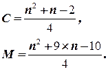 При n =1000, С =499500, M =749250.