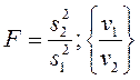 Распределение этого отношения, называющееся F–распределением Фишера – Снедекора, зависит от двух параметров – чисел степеней свободы числителя и знаменателя и , гдеи – объемы выборок. Числа и указываются в фигурных скобках рядом с вычисленным значением F: