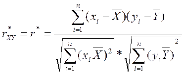 Пусть экспериментальные данные представлены в не сгруппированном виде. Тогда в качестве точечной оценки коэффициента корреляции берут его выборочное значение :