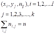 Здесь и – наблюдаемые значения X и Y, а – частота появления пары значений .