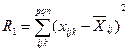 Отклонение отдельного измерения от общего среднего можно представить в виде: