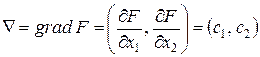 Для нахождения экстремума целевой функции F воспользуемся вектором набла - градиентом F: