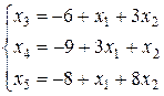Решая эти неравенства, найдем наименьшее значение . Тогда . Объявив и свободными неизвестными, приведем (25) к допустимому виду: