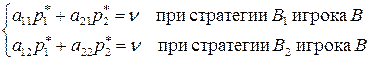 Повторяя те же рассуждения для игрока В, получим систему линейных уравнений