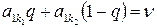 5) Пусть в игре в верхней точке нижней огибающей пересекаются прямые и . Тогда при нахождении оптимальной смешанной стратегии игрока В полагают, что , , , , где q – решение уравнения