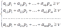 Оптимальная стратегия стратегия игрока А обеспечивает ему средний выигрыш, не меньший , при любой стратегии игрока В. Поэтому все средние выигрыши игрока А можно выписать в виде системы неравенств: