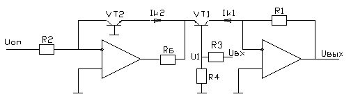 Достоинство схемы: при использовании согласованных транзисторов схема не зависит от тока обратно смещенного р-n перехода, а зависит только от