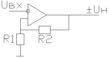 На инвертирующий вход подается напряжение. При входном сигнале, превышающем нулевой уровень насыщ./Ки= U компаратор находится в насыщенном состоянии, причем если сигнал превышает уровень U опорн., то на выходе –Uнас. Если сигнал ниже нулевого уровня, то компаратор находится в +Uнас. В 1 в качестве Uоп. – ноль.