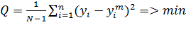 3) Критерий точности должен быть среднеквадратический, т.е. он дифференцируемый, непрерывный (например, среднемодульный прерывается в 0).
