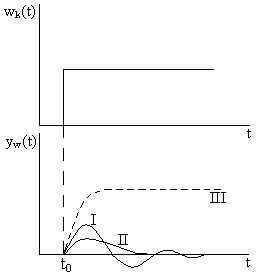 Поэтому отклонения yw(t) от заданного уровня (кривые I и II на рисунке 10) должны быть малыми. Они в общем случае существенно не повлияют на эффективность работы системы регулирования (конечно, при разумной величине скачка wk(t)).