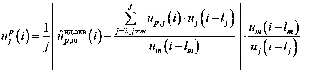 Синтез алгоритмов идентификации множественных объектов. Для объектов, число управляющих и внешних воздействий которых превышает число выходных целевых воздействий, а чистое запаздывание по каналам преобразования воздействий различны, алгоритм идентификации синтезирован следующим образом.