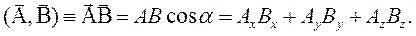 Скалярное произведение векторов А и В равно произведению их модулей на косинус угла между векторами: