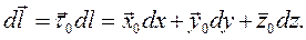 Векторный дифференциал длины вдоль некоторой линии l - это вектор, направленный по касательной. По абсолютному значению он равен скалярному дифференциалу dl. Определение векторного дифференциала иллюстрирует рис. 1.2,а. В декартовых координатах векторный дифференциал может быть представлен проекциями на оси (рис. 1.2,б):