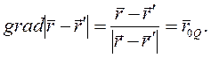 Здесь символом r0Q обозначен орт с направлением r - r'. Расстояние |r - r'| - это функция положения точки Р при фиксированной точке Q.