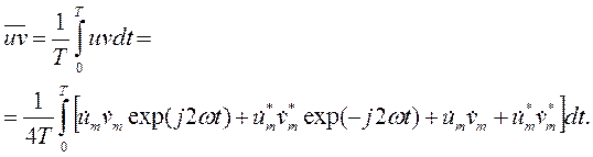 В дополнение к функции u введем функцию v = vmcos(ωt+ψ) и найдем среднее от их произведения: